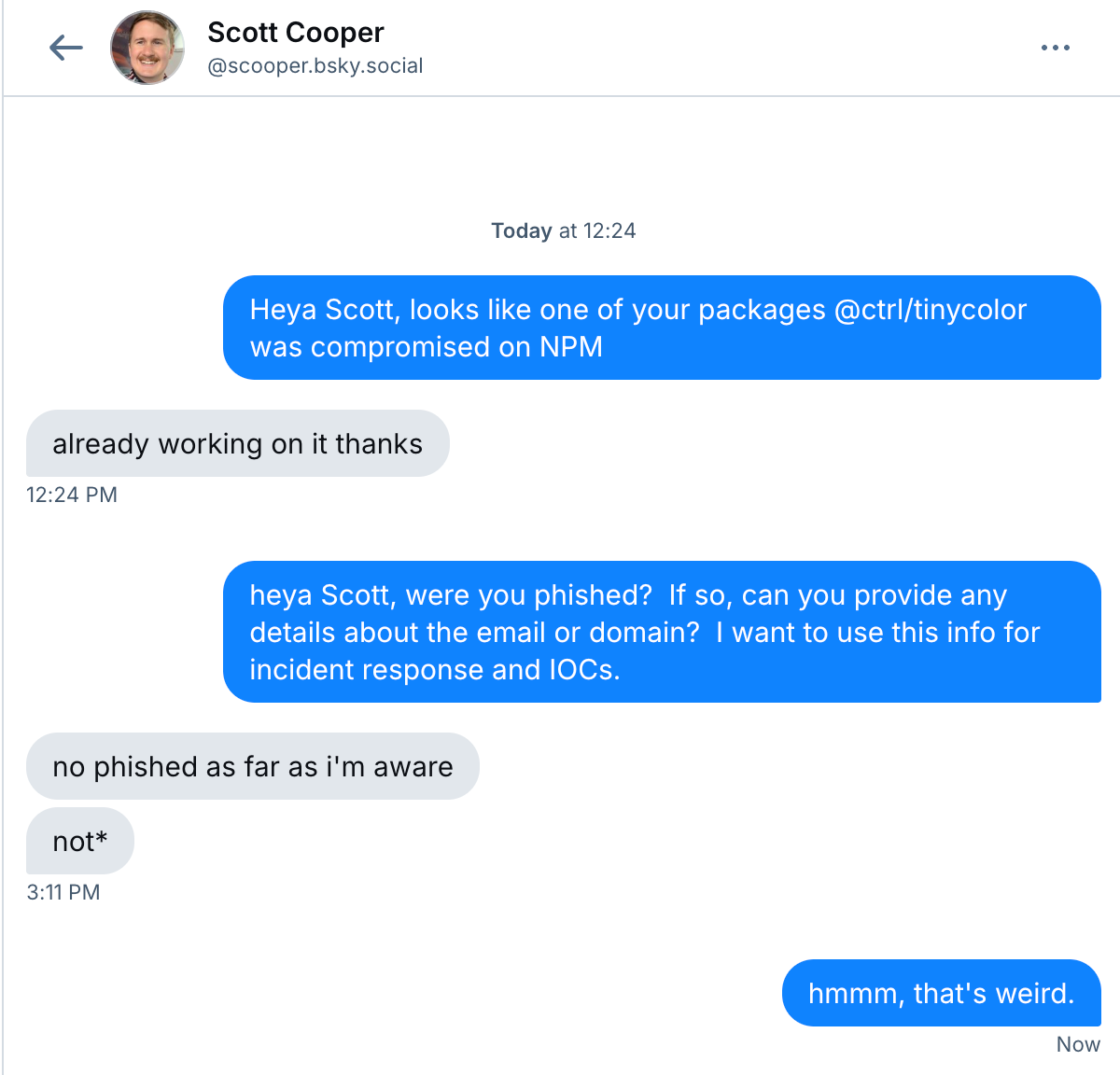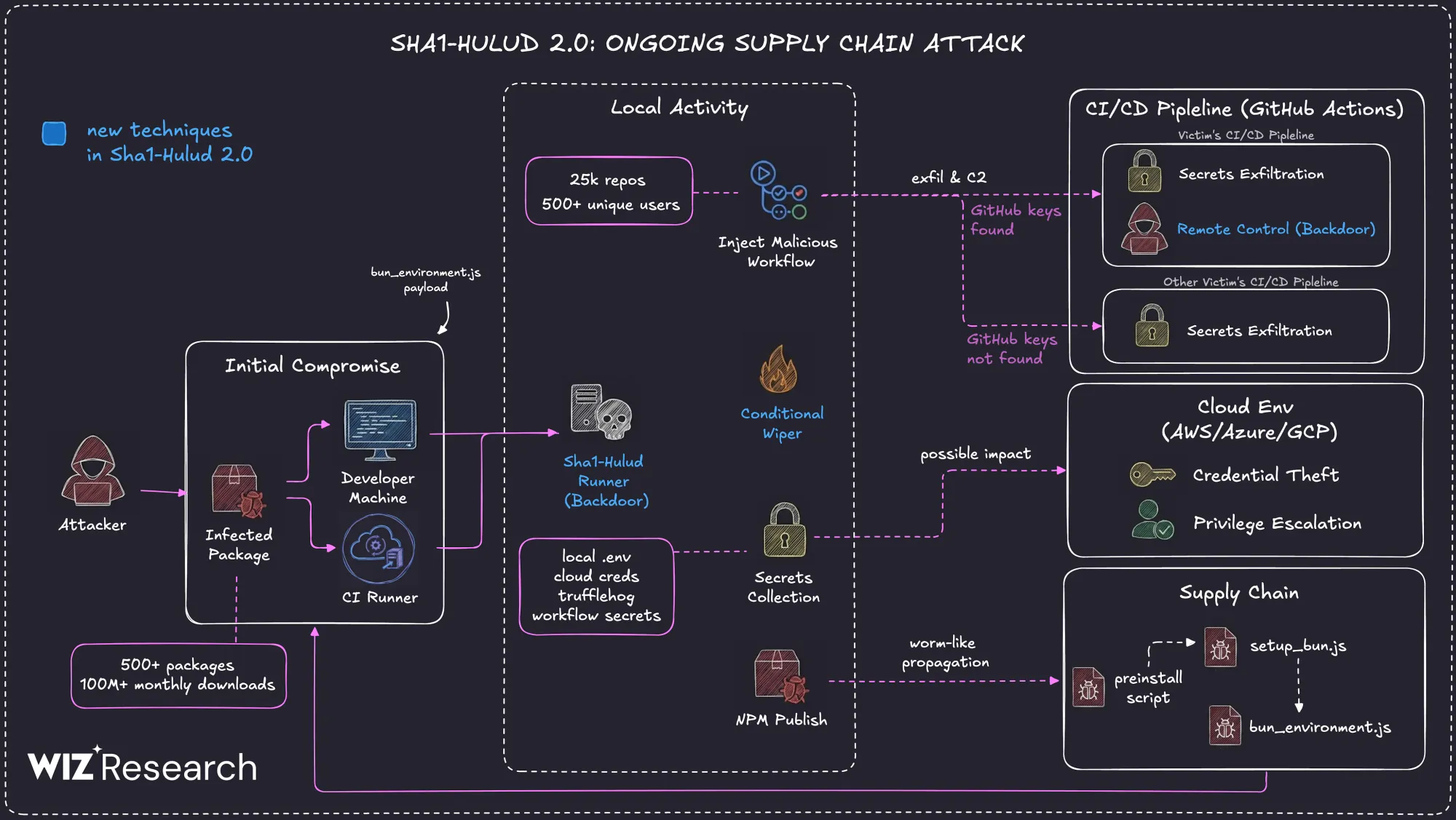 It is very clear given the attackers' increasing sophistication and success so far in both campaigns, these attacks will continue both using similar TTPs and leveraging the credential trove harvested to date. More variants and more headlines will be expected. The only way to lessen the impact is to make sure a compromised npm install has as little to steal as possible. In other words, stop hardcoding secrets and make sure "CI logs, build artifacts, and debug output aren't quietly hoarding credentials". Another mitigation strategy is to treat "non-human identities as managed assets with owners, scope and rotation to understand usage, detect potential abuse and close the loop with their human owners quickly if something goes awry". This will help understand quickly “which secrets were exposed, which identities they belong to, and are they actually revoked?”. Some sources to help in the investigation for defenders are OpenSourceMalware, a community threat database, Are my secrets out? by Entro, and Has My Secret Leaked? by GitGuardian. References below: