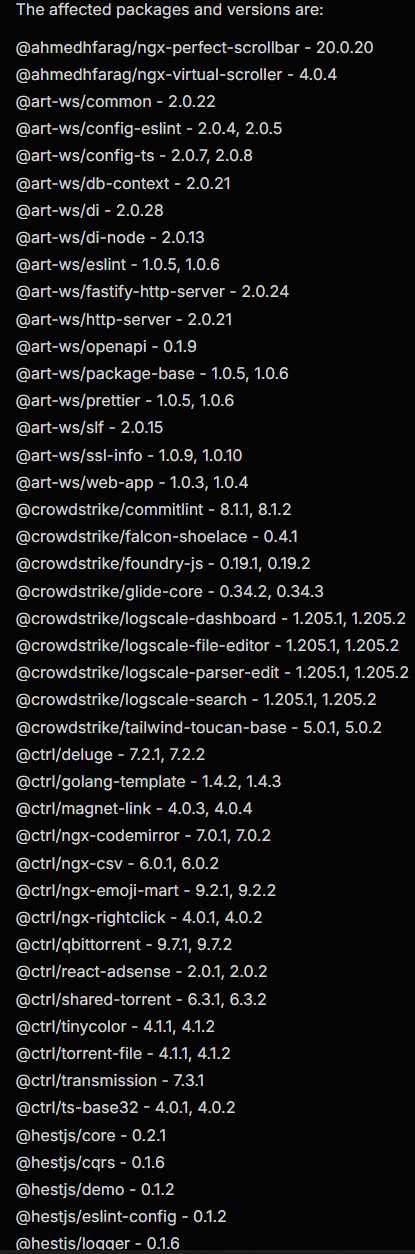 Npm packages from notable companies like Zapier, ENS Domains, PostHog, PostMan, and many others were compromised.