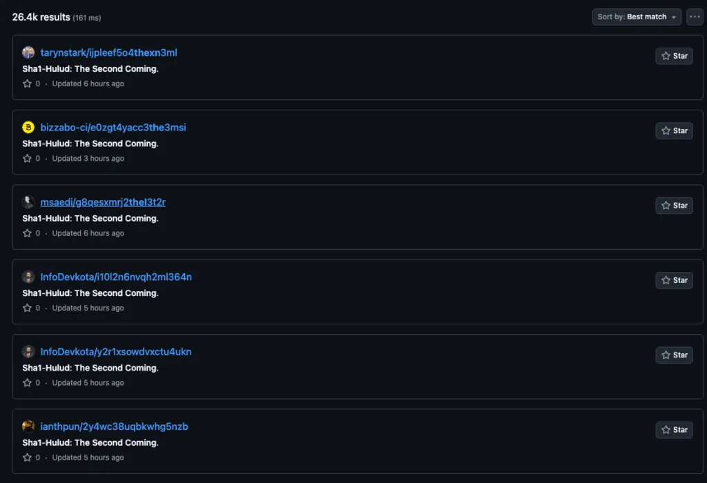 The next day on September 16, 2025 the self-replicating mechanism for Shai-Hulud began to take hold using stolen npm tokens to compromise other packages maintained by the same developer. The malicious code was automatically injected into new versions of compromised packages, which allowed the worm to spread rapidly across the npm ecosystem. Shai-Hulud began to exfiltrate stolen secrets in two ways. First, it created a public GitHub repository named "Shai-Hulud" on the victim's account and uploaded a base64-encoded JSON file containing the harvested credentials. The final step was injection of a malicious GitHub Actions workflow into accessible repositories, which exfiltrated secrets to an attacker-controlled webhook.